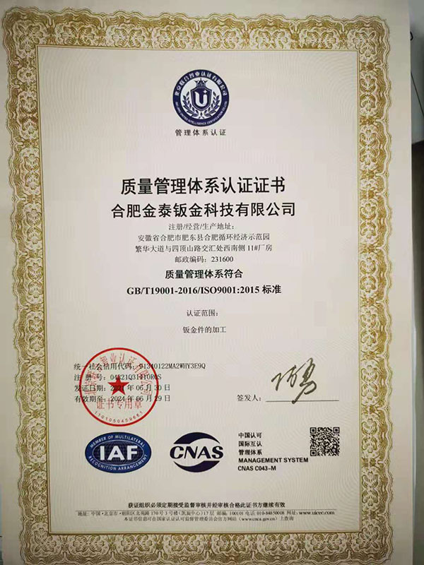 合肥金泰鈑金科技有限公司,專業(yè)從事精密鈑金件加工的新技術股份制企業(yè),主要承接各類鈑金加工、激光切割、沖壓件、機箱機柜、設備外殼、不銹鋼產品的精密鈑金加工制作。